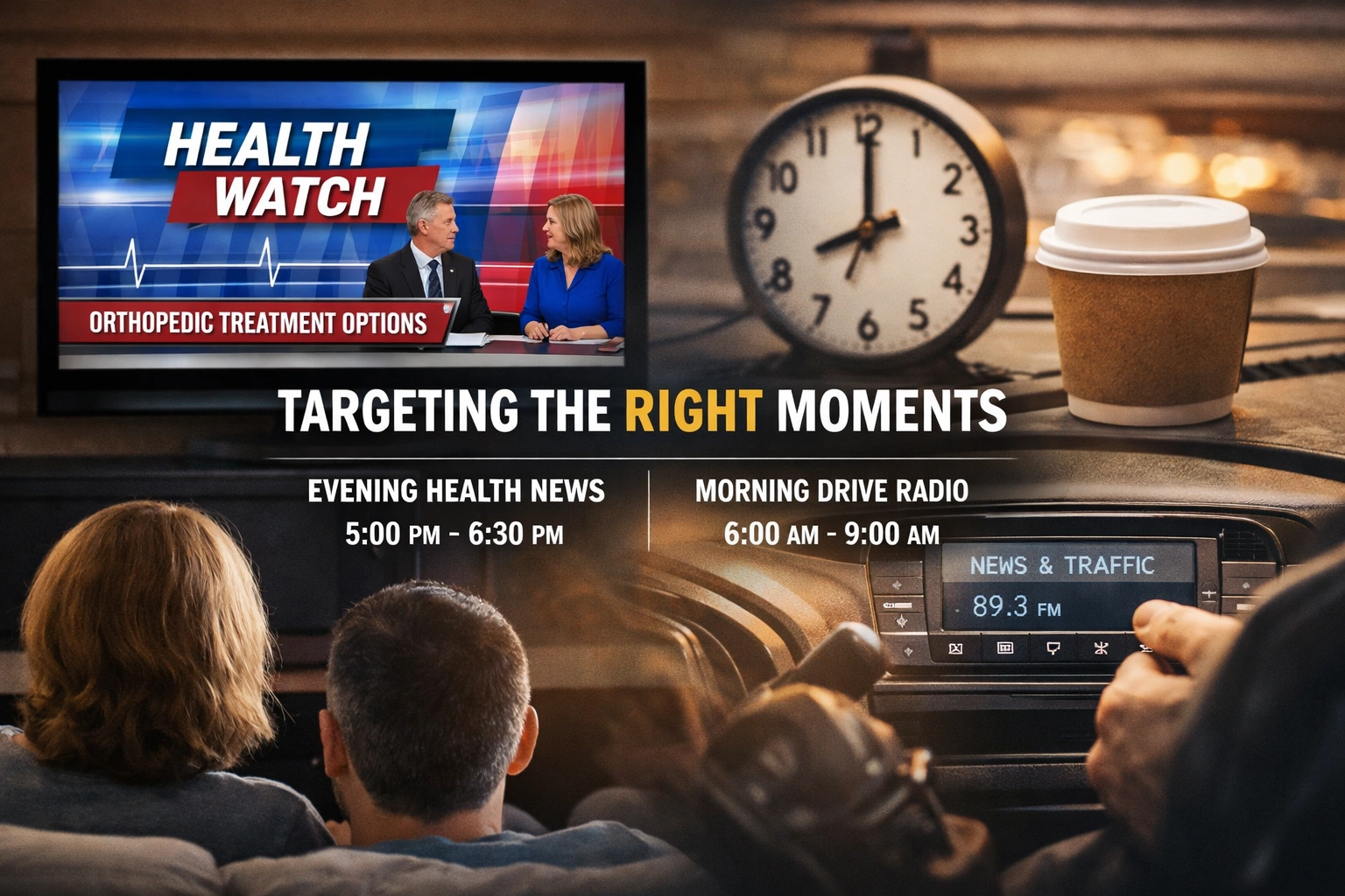 For example, early evening local television news between 5:00 and 6:30 PM can be especially effective for regional hospitals promoting orthopedic or cardiovascular services. This is when households transition from work to home and are more likely to engage with health-related content. Messaging can be concentrated within local news health segments, consumer health reports, and medical updates.